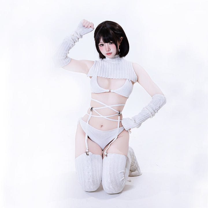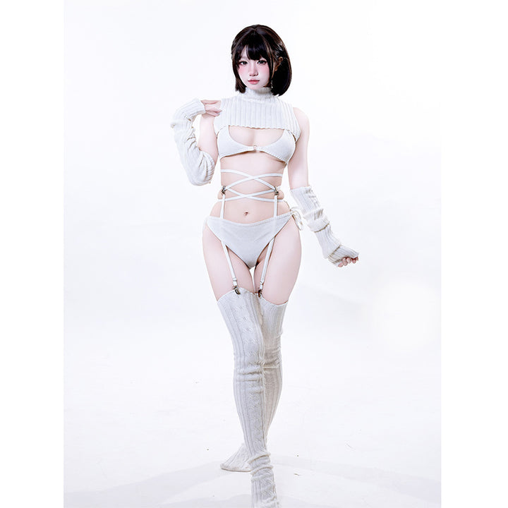 F-236 Backless Sweater Japanese-Style Cosplay Otaku-Magnet Sexy Turtleneck Socks, Gloves & Strappy Sweater Set