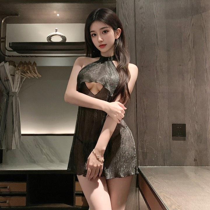 M-ZY135 Sexy Teasing Sheer Nightgown - Starry Galaxy Print, Lift-Up Braless Design & Easy-Access Lingerie Pajamas