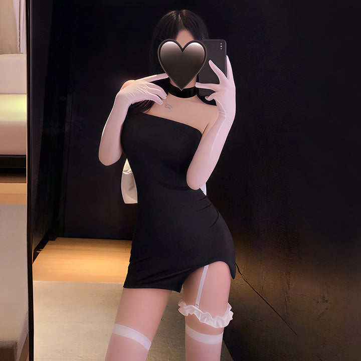 M-ZY83 Sexy Innocent Reversible Bow Set - Teasing, Braless & Bodycon Mini Dress